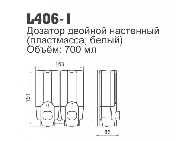 Дозатор Ledeme L405-1Дозатор Ledeme L405-1Модель: Ledeme L405-1;Дата выхода на рынок: 09.2020;Материал корпуса: -колба пластик 300 мл-верхняя часть металл-механизм пластикЦвет: -колба белый-крепление ч.. |