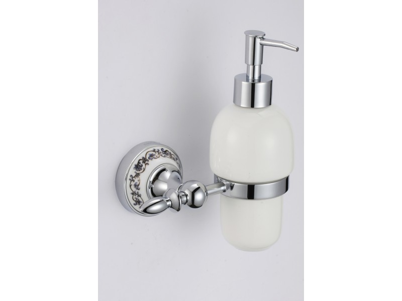 Купить дозатор для жидкого мыла с настенным держателем и фарфоровой вставкой гжель SAVOL S-06831A и аксессуары для ванной и туалета оптом и в розницу у дилеров ООО 'Аш два О' с доставкой по Минску и Беларуси