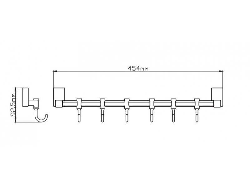 L70201B-6 планка с 6-ю крючками,черная.. |