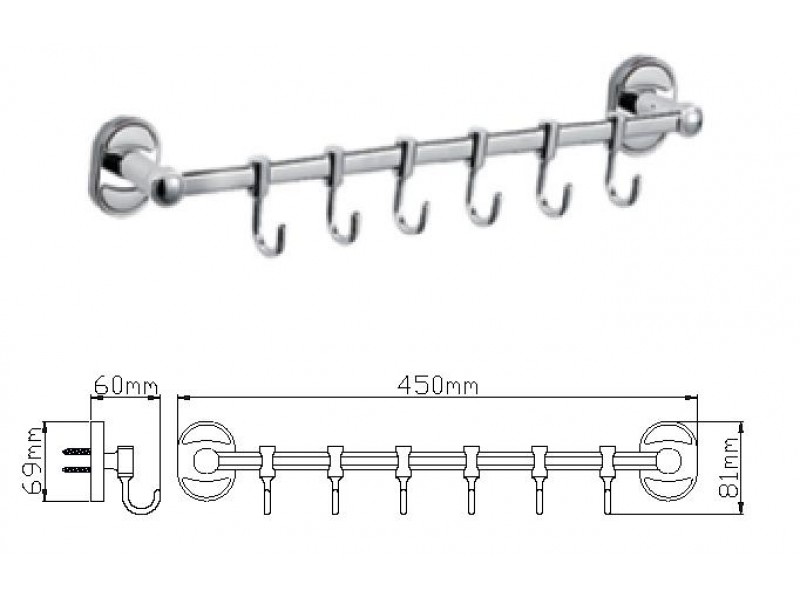 Планка с шестью подвижными крючками WISENT WP2815-6