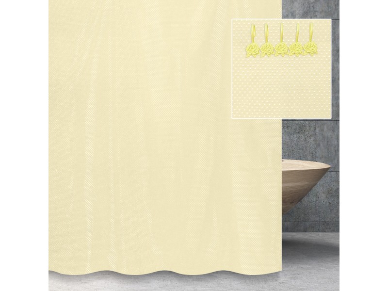 Занавески бежевого цвета для ванной из полиэстера с декоративными кольцами для карниза.