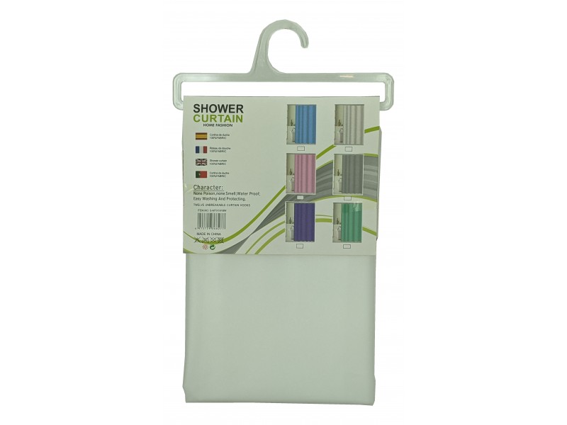 Однотонная белая шторка для ванной с кольцами для карниза.