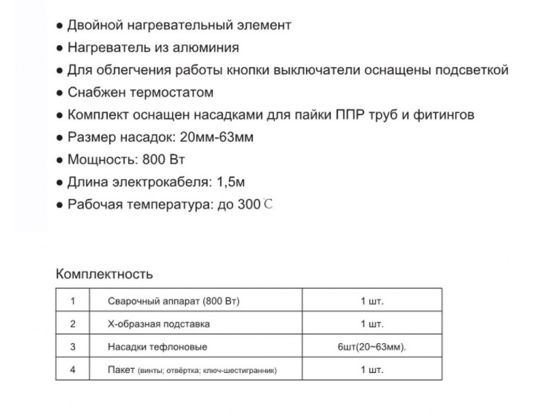 • Комплект оснащен насадками для пайки ППР труб и фитингов