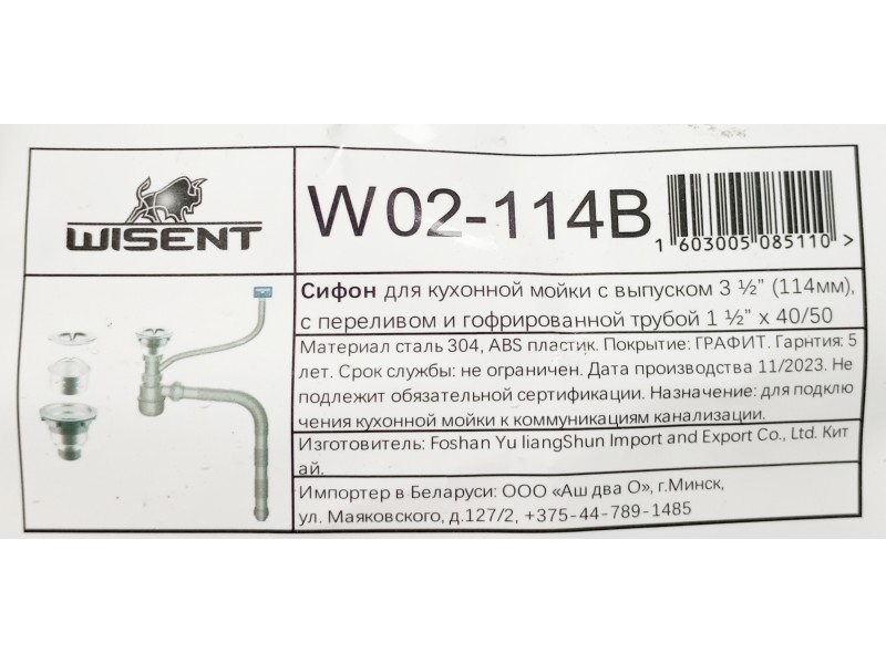 Сифон для кухонной мойки WISENT W02-114B