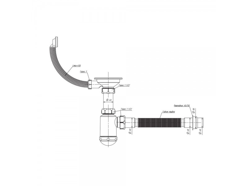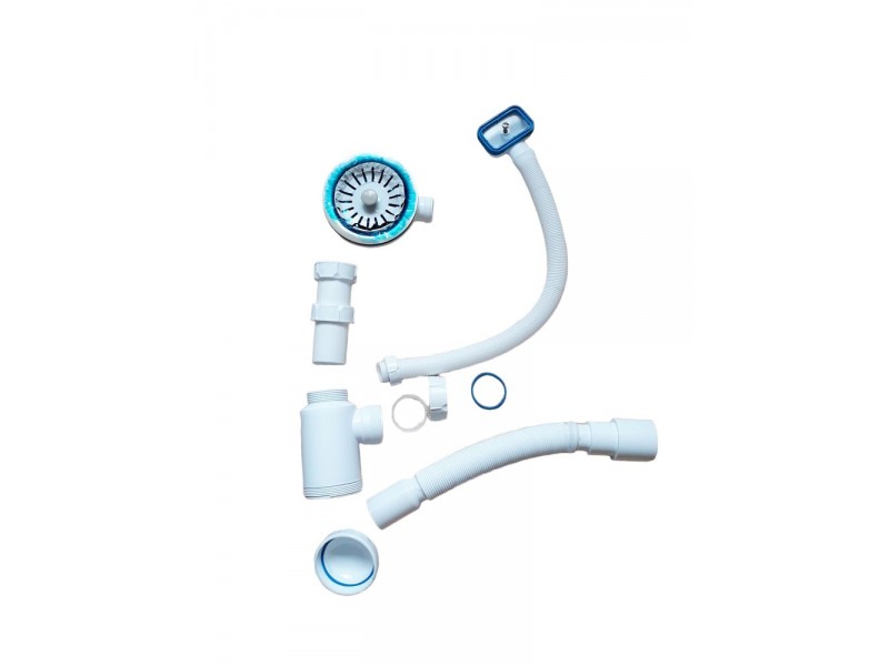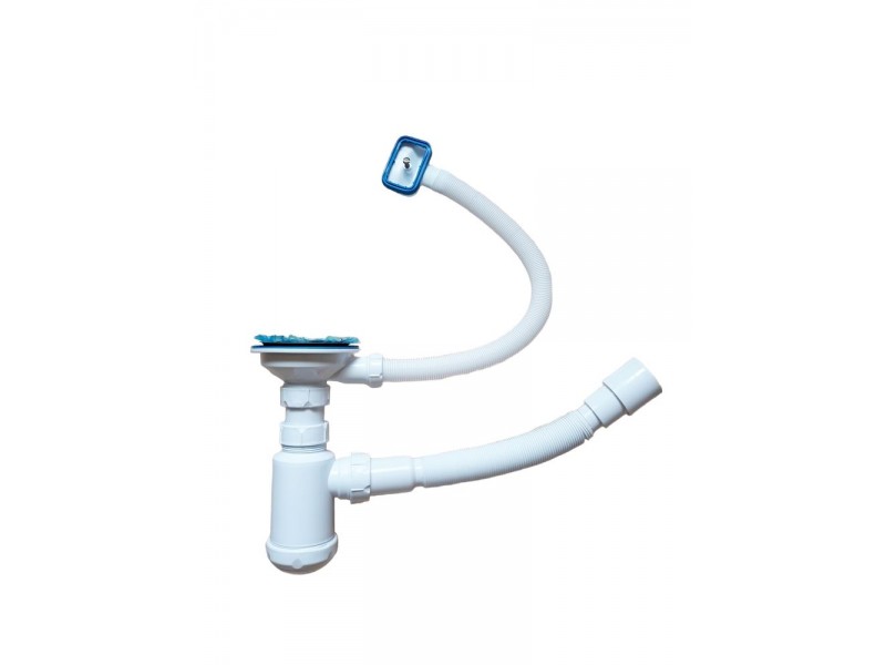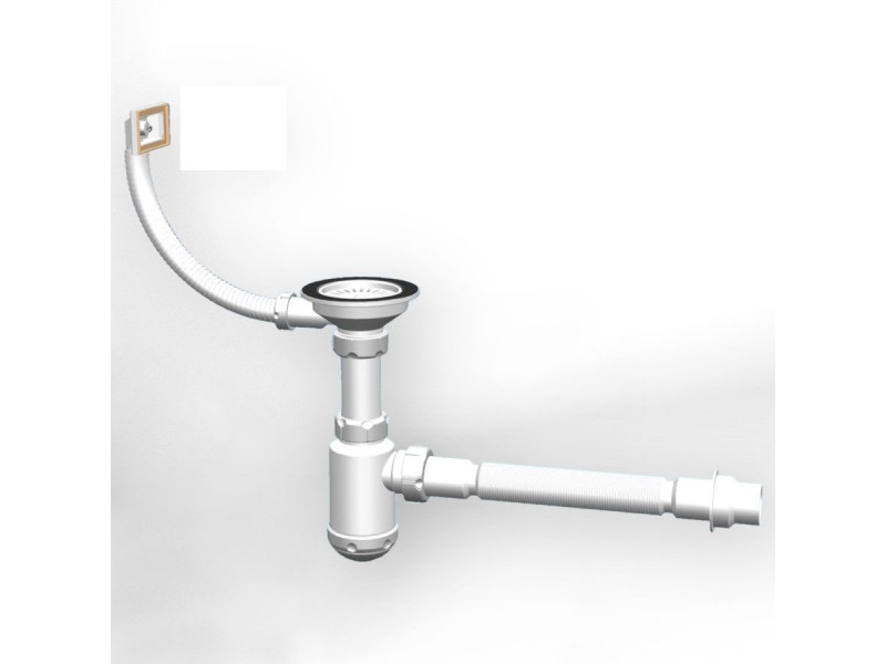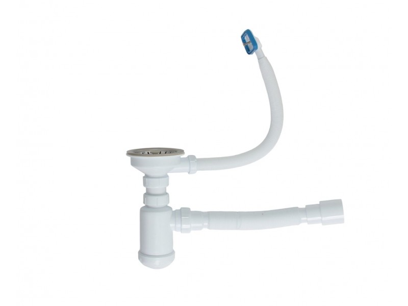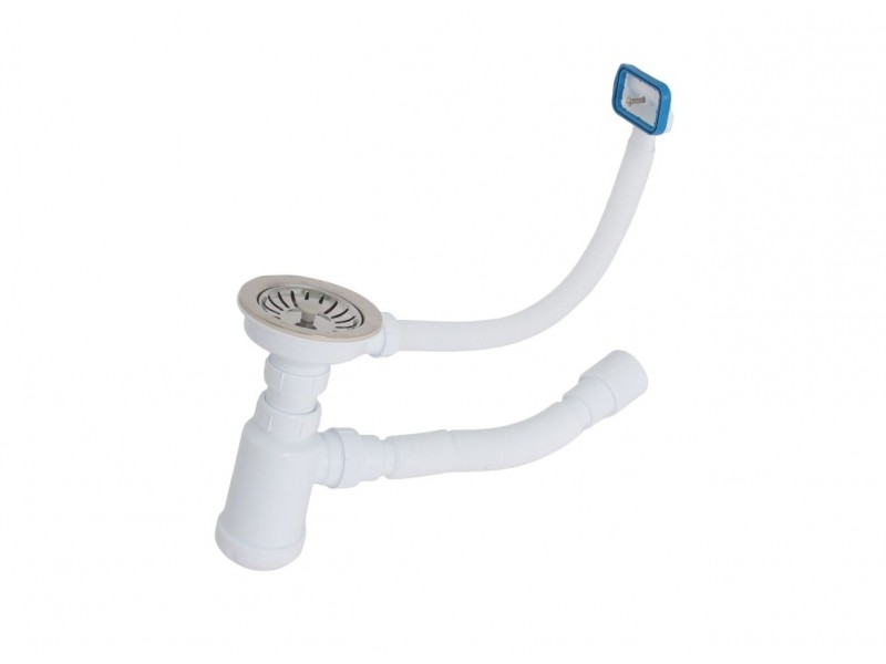 Сифон для кухонных моек с диаметром сливного отверстия 90мм, бутылочного типа. С разборным выпуском и нержавеющей решеткой, с прямоугольным боковым переливом для моек из нержавеющей стали. Корпус перелива оборудован универсальной прокладкой для круглых и прямоугольных моек, нужная сторона прокладки достигается путем переворота. Комплектующие выпуска изготовлены из композитного пластика. Выход для подключения к канализации 40мм