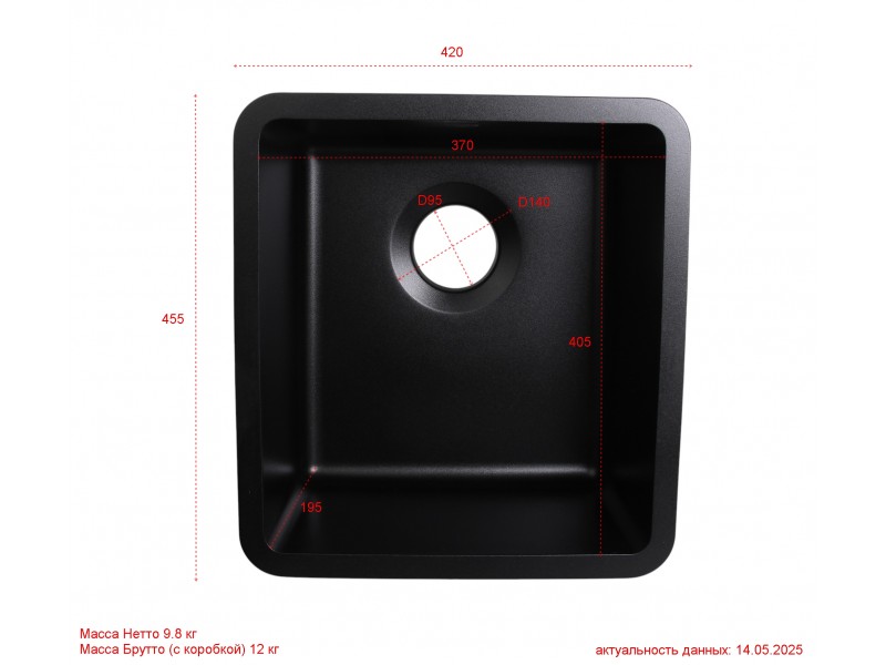 Размер чаши: 405*370*195 мм;