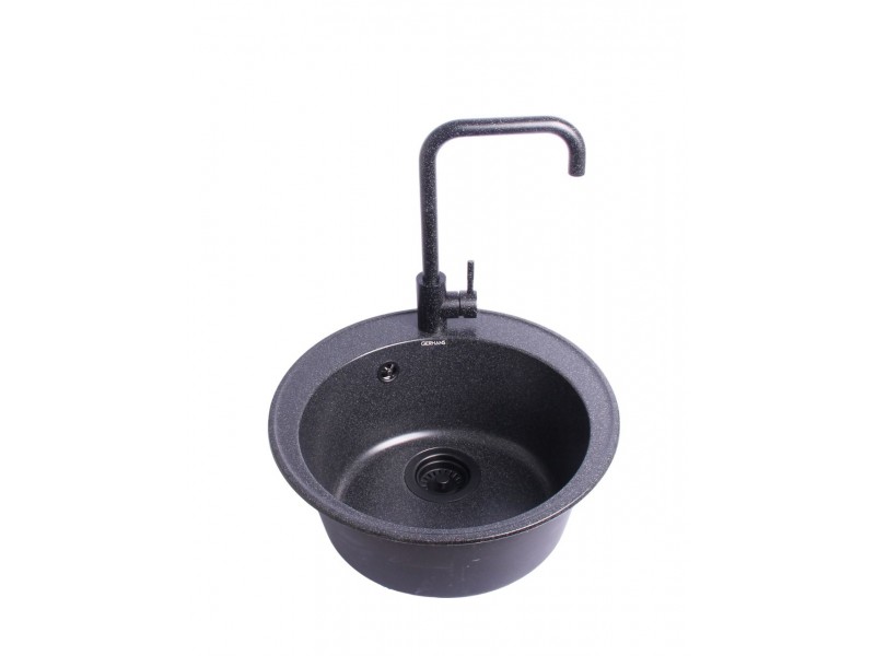 Комплект мойка Gerhans A04-22(чёрная)+смеситель Wisent W4998-4-22(чёрный)+ сифон Wisent GER019(чёрный)