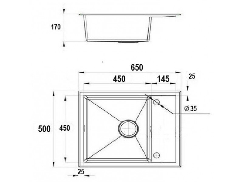 Размер мойки: 650 x 500 x 220