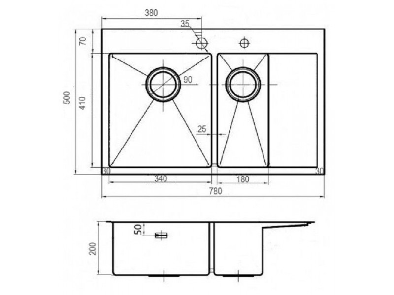 Размер мойки: 780 x 510 x 220