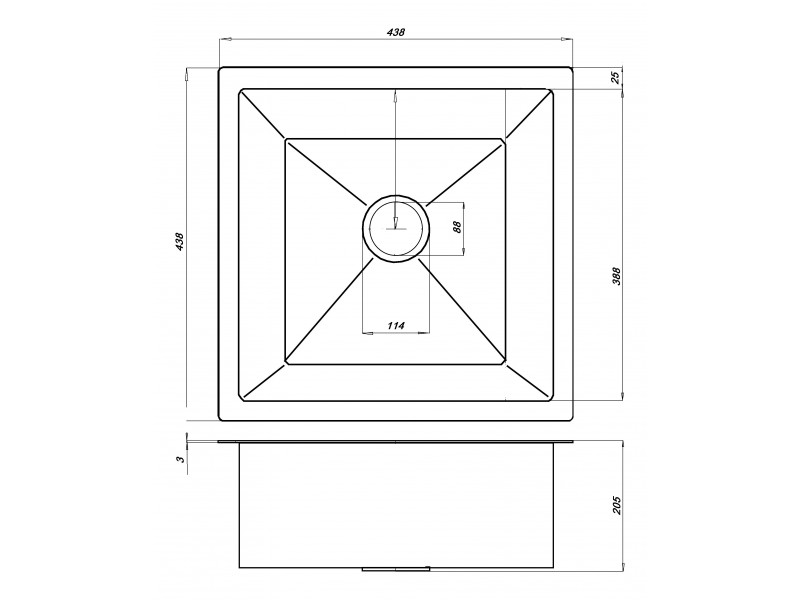 WS-34444B Кухонная мойка WISENT БЕЗ СИФОНА нержавейка, ГРАФИТ 440*440Ссылка на готовый к продаже комплект... |