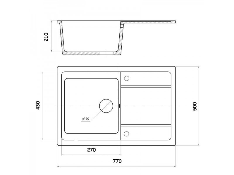 На мойках установка которых возможна чашей, как слева так и справа ,отверстие под смеситель ВЫСВЕРЛИВАЕТСЯ ФРЕЗОЙ!