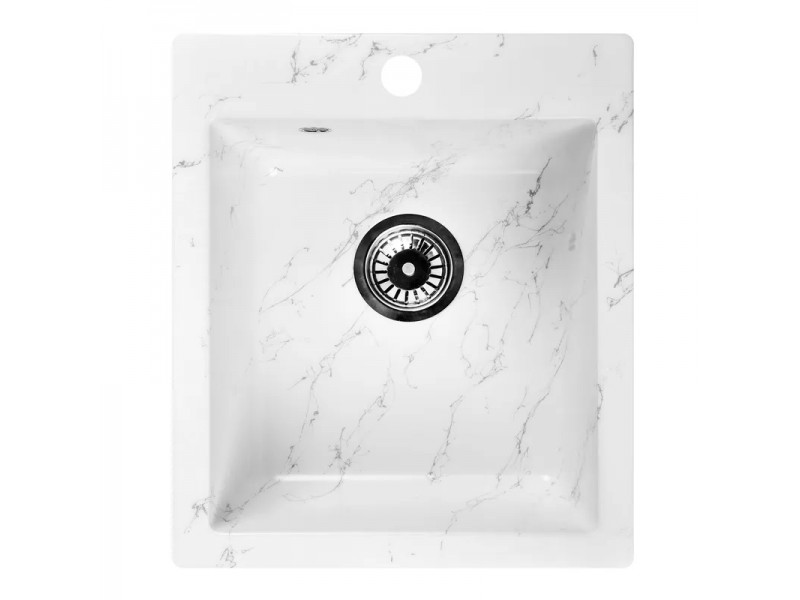 WA10-10 WISENT каменная под мрамор мойка д/кухни, белая с черными прожилками (БЕЗ СИФОНА)