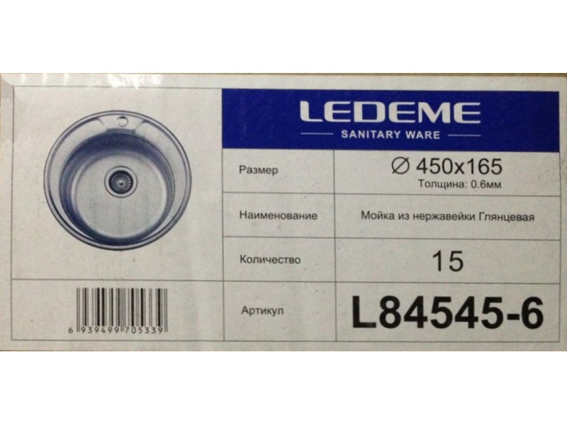 Купить мойку из нержавеющей стали глянцевая толщиной 0,6мм LEDEME L84545-6 с сифоном с большим выпуском и креплением