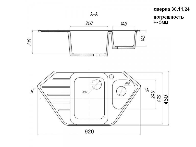 На мойках установка которых возможна чашей, как слева так и справа ,отверстие под смеситель ВЫСВЕРЛИВАЕТСЯ ФРЕЗОЙ!