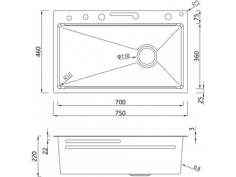 4.Чаша из нержавеющей стали с отверстием для слива и пластиковой крышкой.