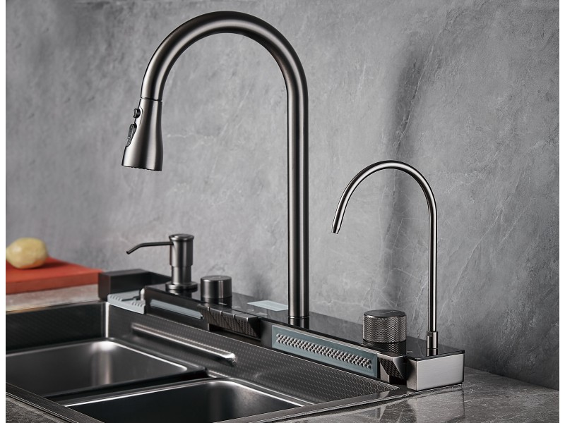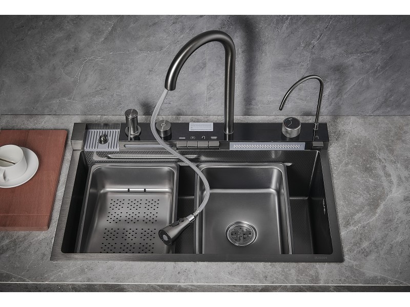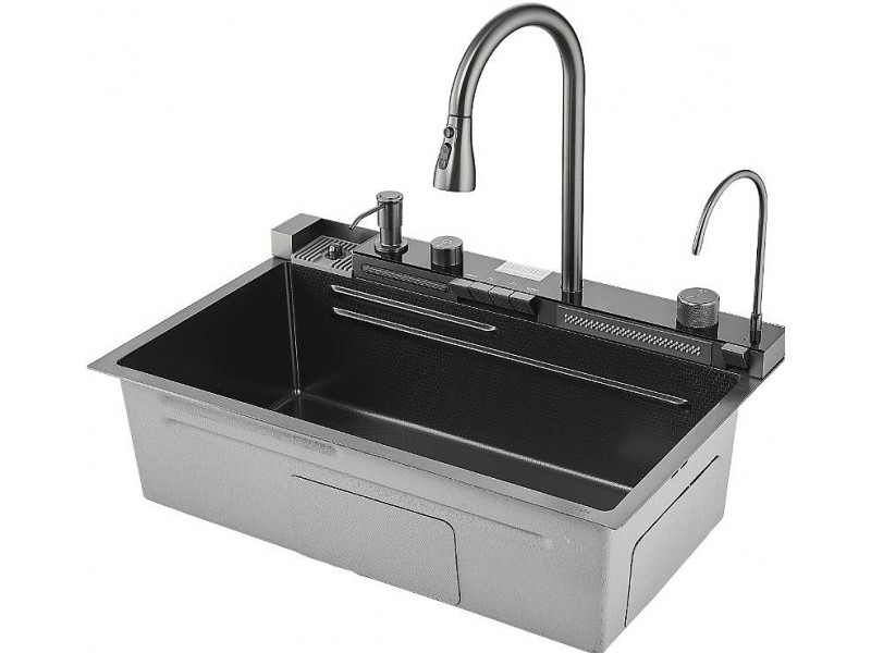 Мойка Savol S-SC001Q предназначена для рационального планирования рабочего места на кухне. Модель оснащена панелью со смесителем, водопадом, краном для питьевой воды и ополаскивателем стакана. Изделие выполнено из нержавеющей стали, которая отличается прочностью, долговечностью, устойчивостью к царапинам и коррозии.
