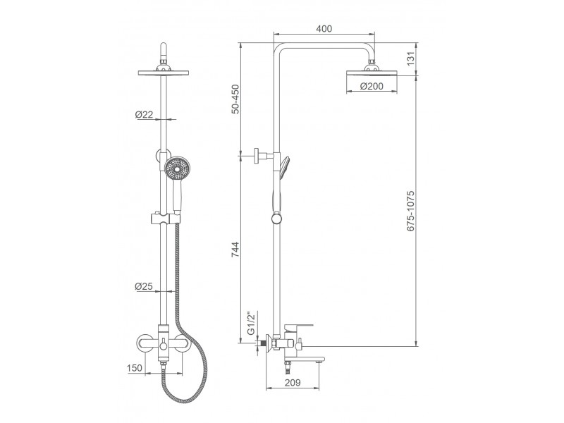 Теги: серия штанг, штанга со смесителем и тропическим душем, душ, тропический душ, стойка, 35мм