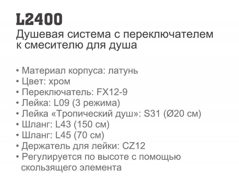 Душевая система Ledeme L2400 с переключателем для смесителя.