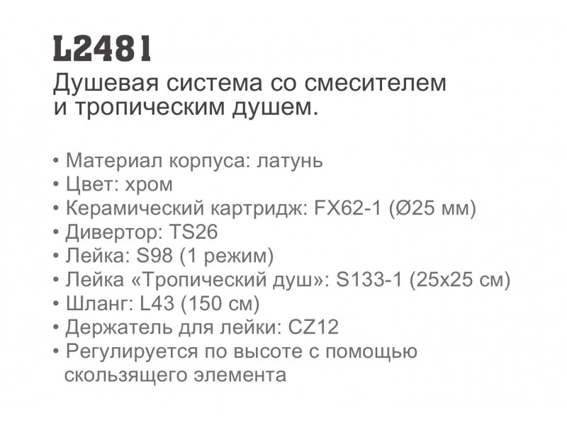 L2481B Душевая система со смесителем и тропическим душем чернаяСерия H81 латунь Новинки Смеситель Ledeme-латунный смеситель из высококачественных комплектующих.Корпуса смесителей Ledeme отливаются из латуни КЛАССА А с содержанием меди .. |