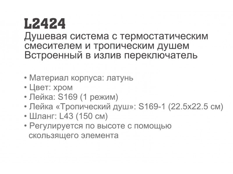 L2424 Душевая система термостатическим механизмом и тропическим душем.