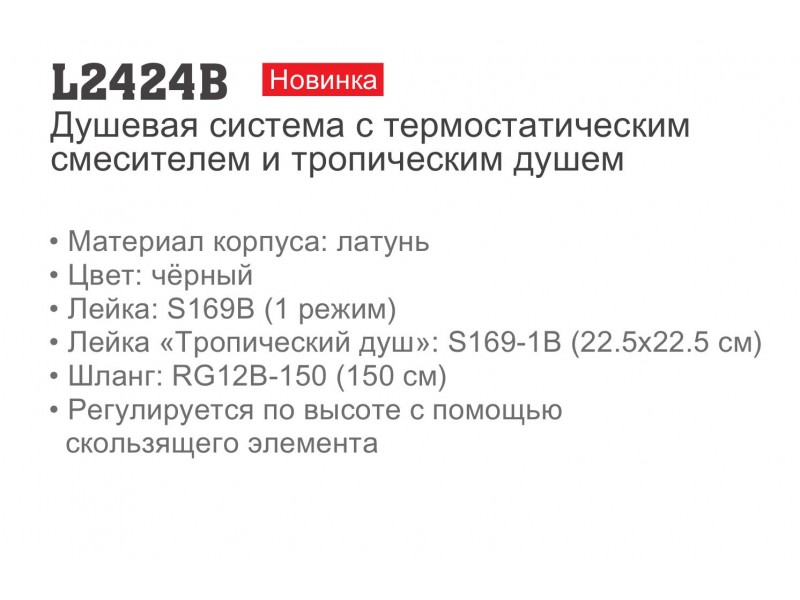 L2424 Ledeme душевая система с термостатомВ нашей компании можно приобрести товар для оптовой торговли. Розничные и мелкооптовые клиенты обслуживаются в сети дилеров ООО Аш Два О или в магазинах торговых представителей L2424 Душевая система т.. |