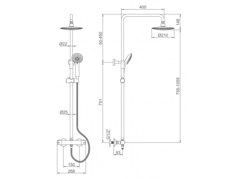Однорежимная лейка регулируется по высоте на скользящем по штанге держателе.