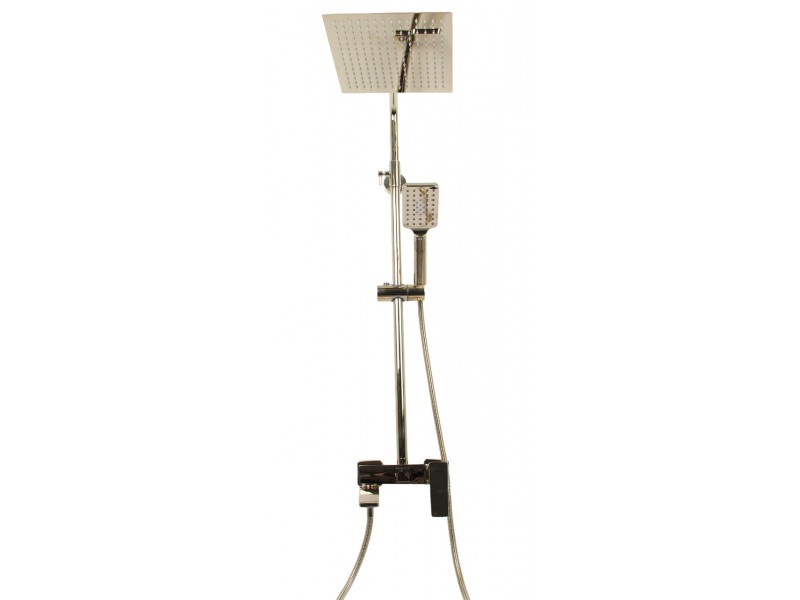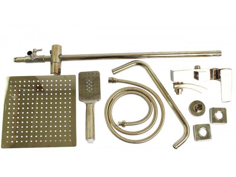 Комплект душевой системы без смесителя включает гибкий шланг с внутренней трубкой из экологичного этиленпропиленового полиэтилена PEX и потолочную лейку с тропическим душем 20смх20см.
