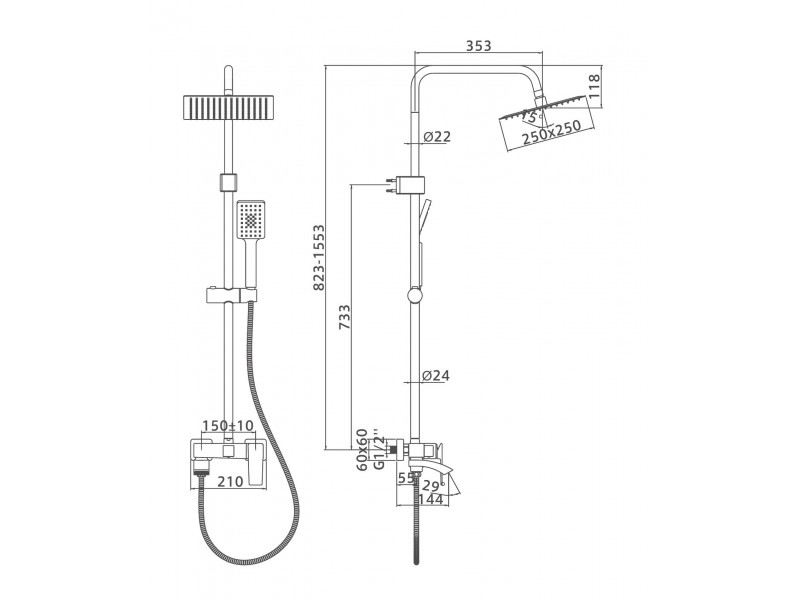 Теги: серия штанг, душевые системы со смесителем, серия h03 латунь 35мм, встраиваемый, душ, врезной