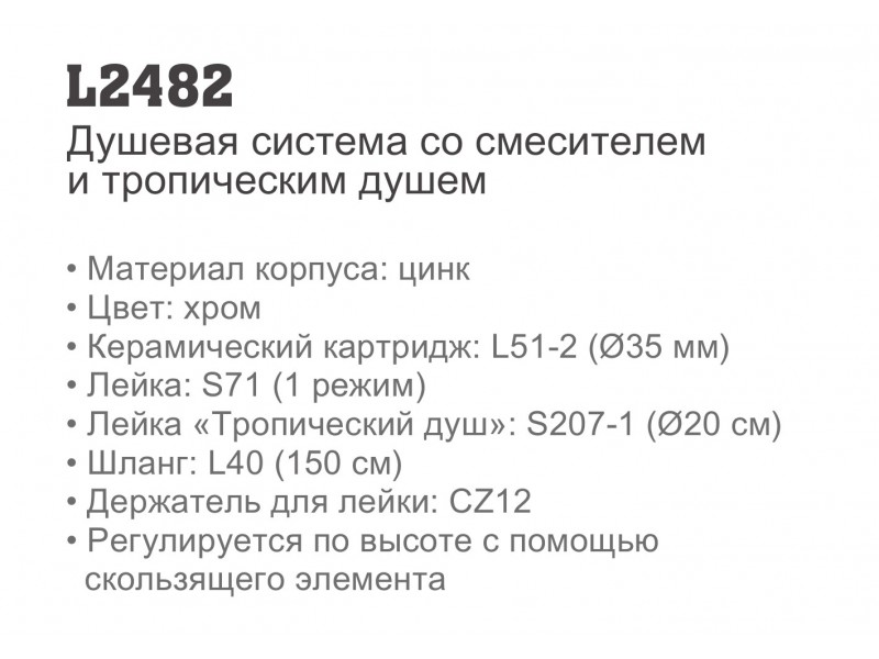Душевая система со смесителем и тропическим душем LEDEME L2482.