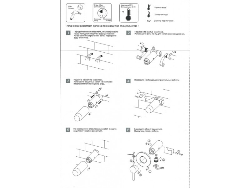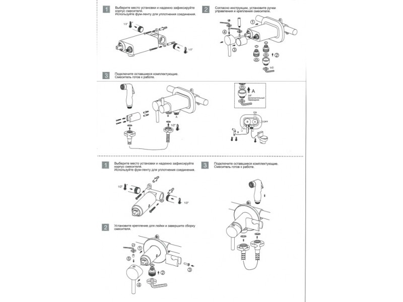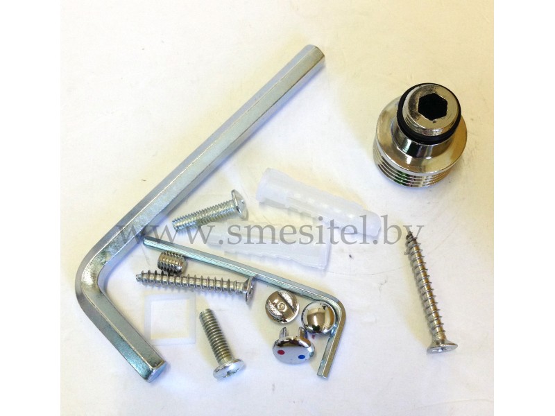 Комплект смесителя включает лейку,шланг длинной 120см и инструмент для сборки.