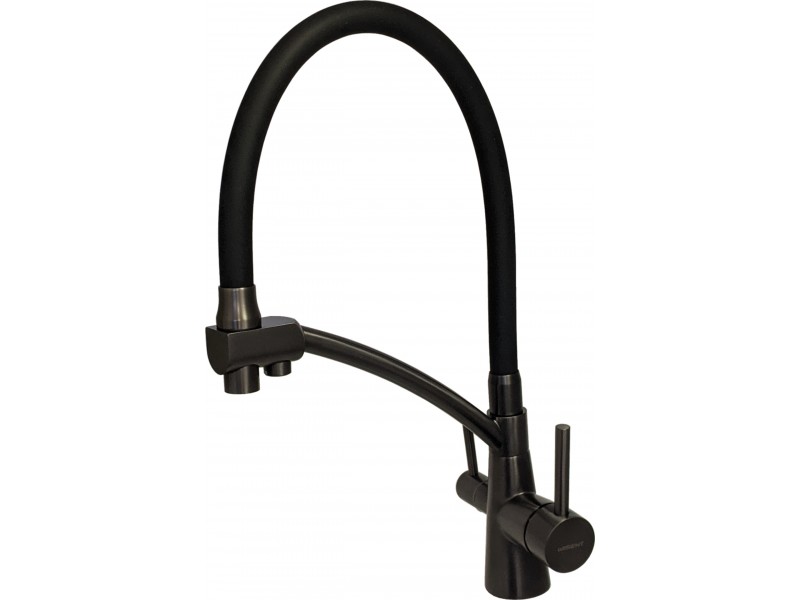 Смеситель с питьевым краном GERHANS KK4855U-12Смеситель с дополнительным краном для питьевой воды.Гибкий темно серый излив с аэратором.Корпус окрашен в графитный цвет.Эксклюзивная поставка с запасными картриджами и аэраторами.В нашей компании мож.. |