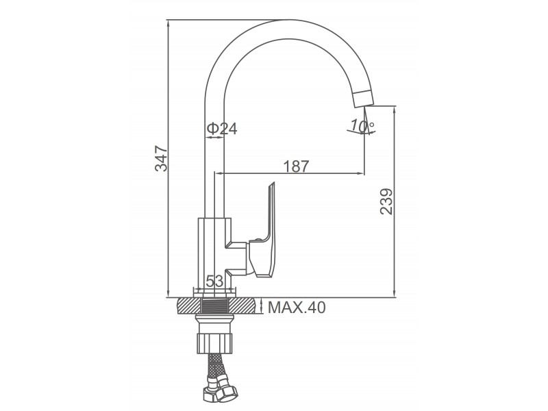 Комплект смесителя включает гибкую подводку в стальной оплетке с внутренней трубкой из экологичного этиленпропиленового полиэтилена PEX.