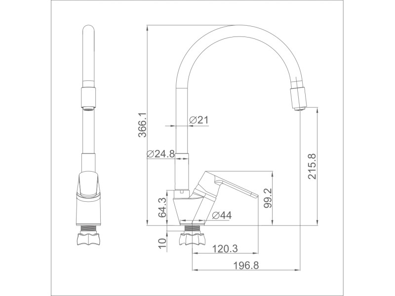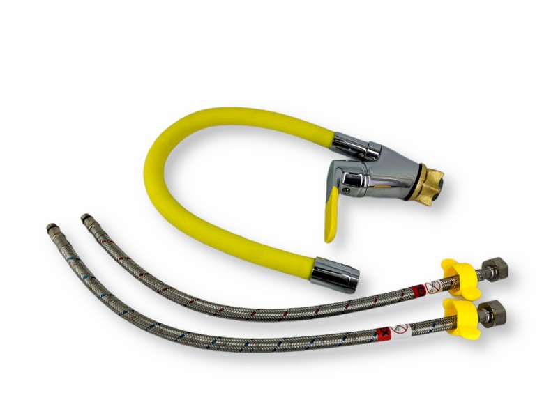 Комплект смесителя включает гибкую подводку в стальной оплетке с внутренней трубкой из экологичного этиленпропиленового полиэтилена PEX.