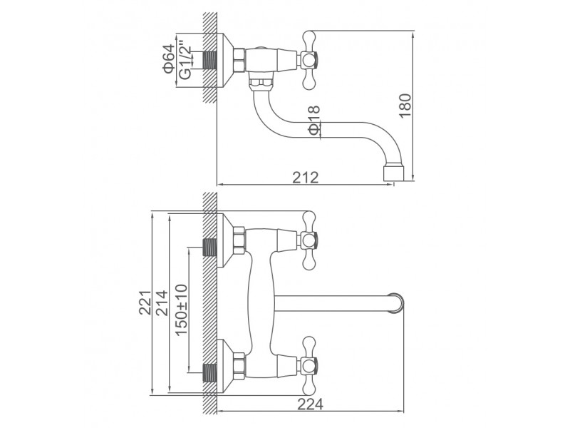 Теги: серия h08, кран-буксы, крест, маховик, кухня, настенный, пристенник
