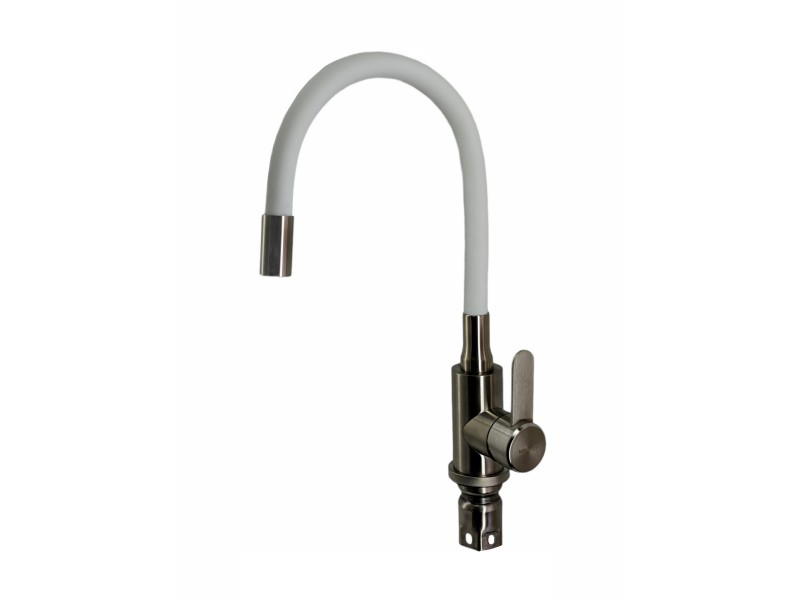Цвет эластичной гибкой части излива белый.