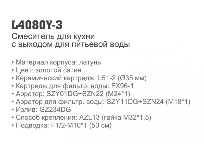 | Аэратор для фильтр. воды: | SZY01DG+SZN24 (M18*1) |
