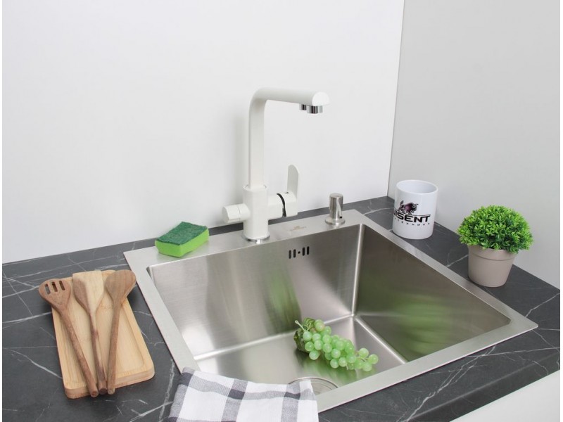 Смеситель для кухонной мойки Wisent отличается цветом и крепким монолитным корпусом.