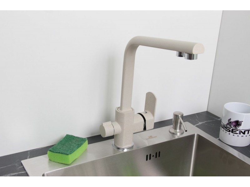 Смеситель для кухонной мойки Wisent отличается цветом и крепким монолитным корпусом.