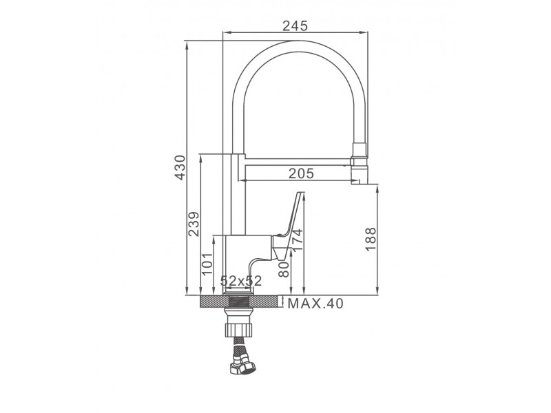 Тип крепления: на кухонную мойку, на гайке (макс. толщина плоскости 4 см);
