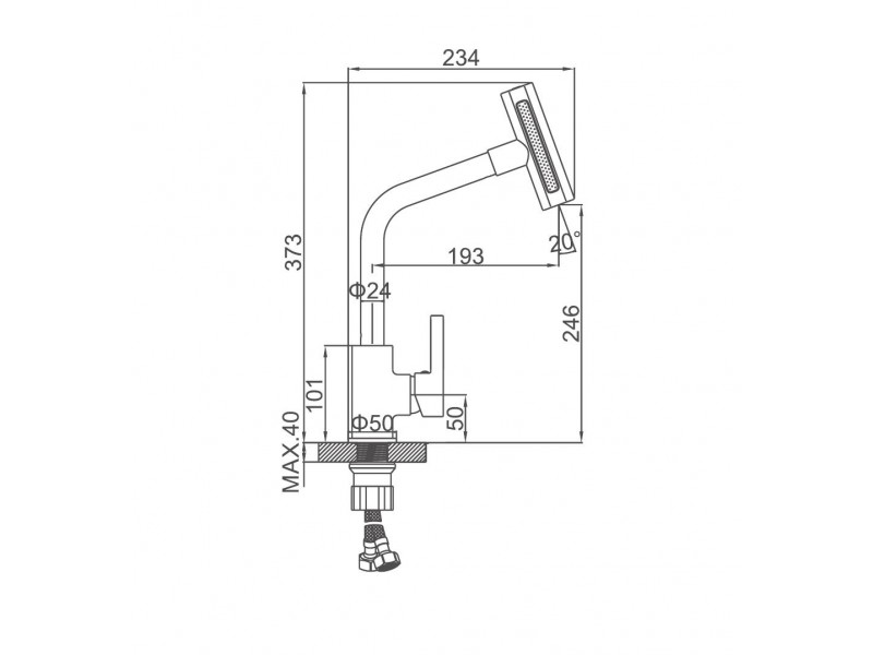Комплектация: смеситель, гибкая подводка, крепление, обратный клапан;