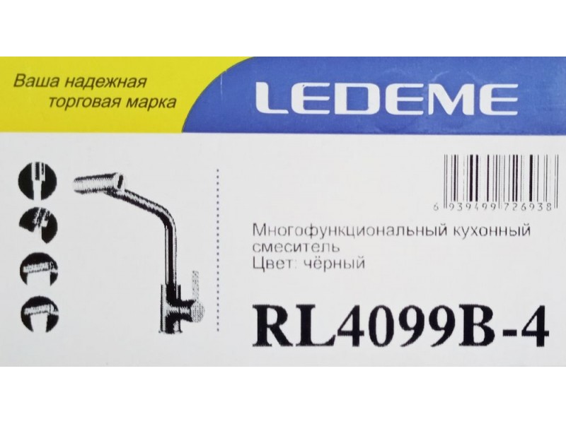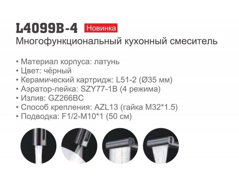 Смеситель для кухни Ledeme L4099B-4 (чёрный, излив 4 режима)