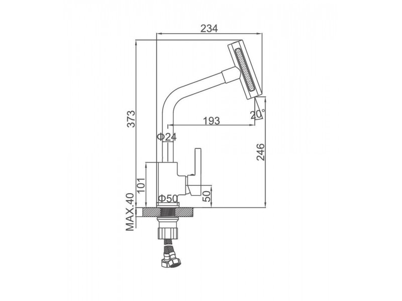 Комплектация: смеситель, гибкая подводка, крепление, обратный клапан;