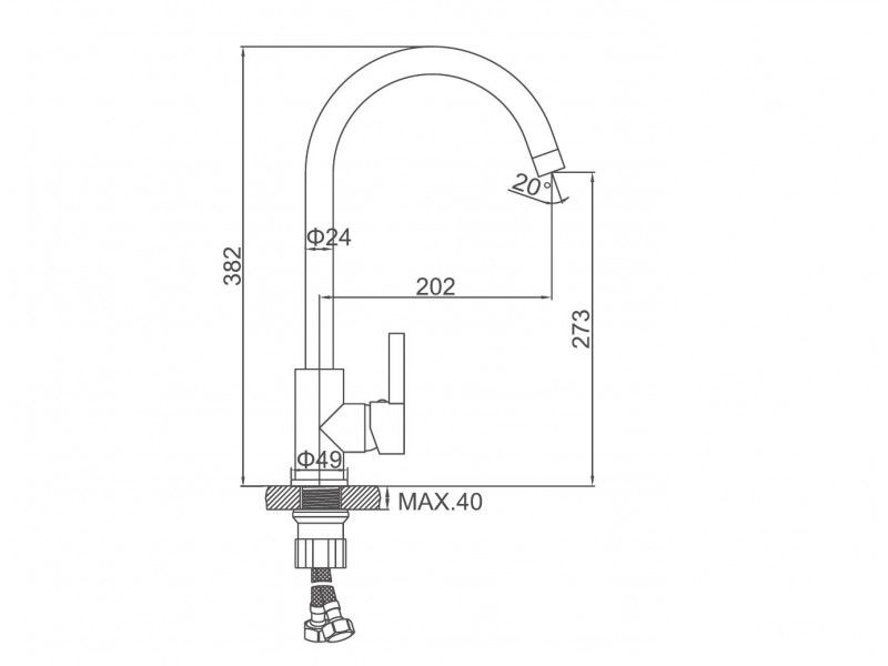 Комплектация: смеситель, гибкая подводка, крепление;