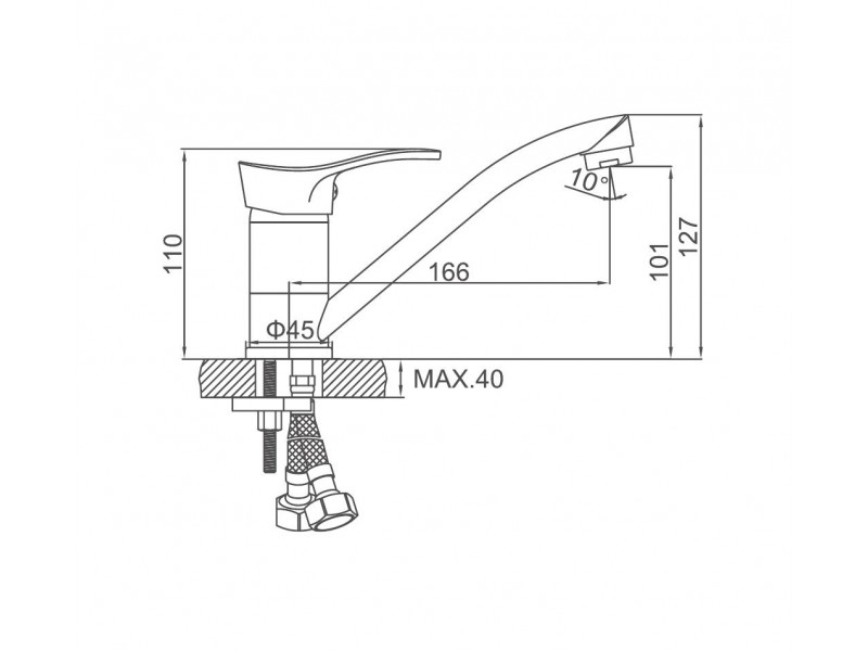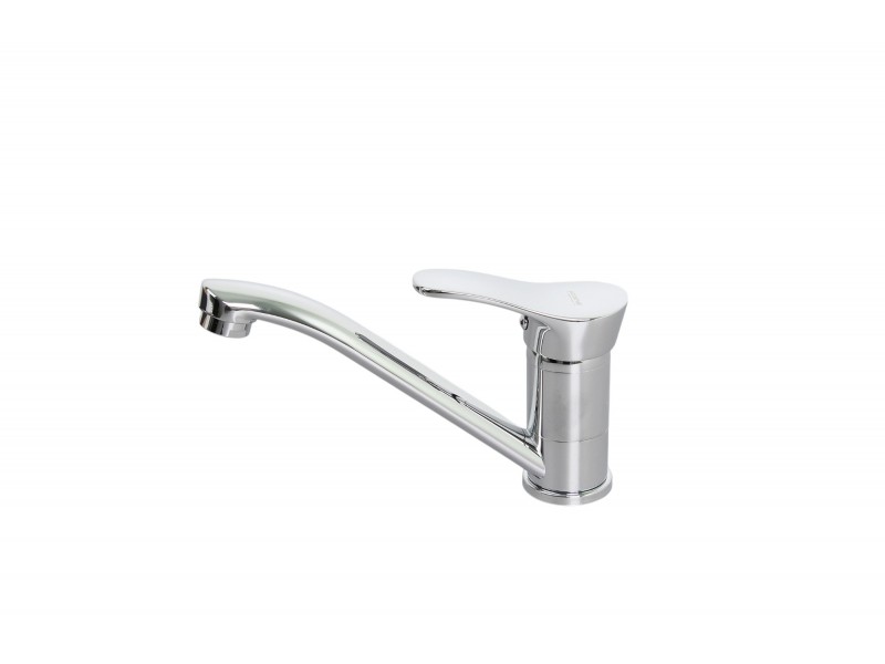 Классическая модель смесителя для мойки или умывальника с низким поворотным изливом средней длины.
