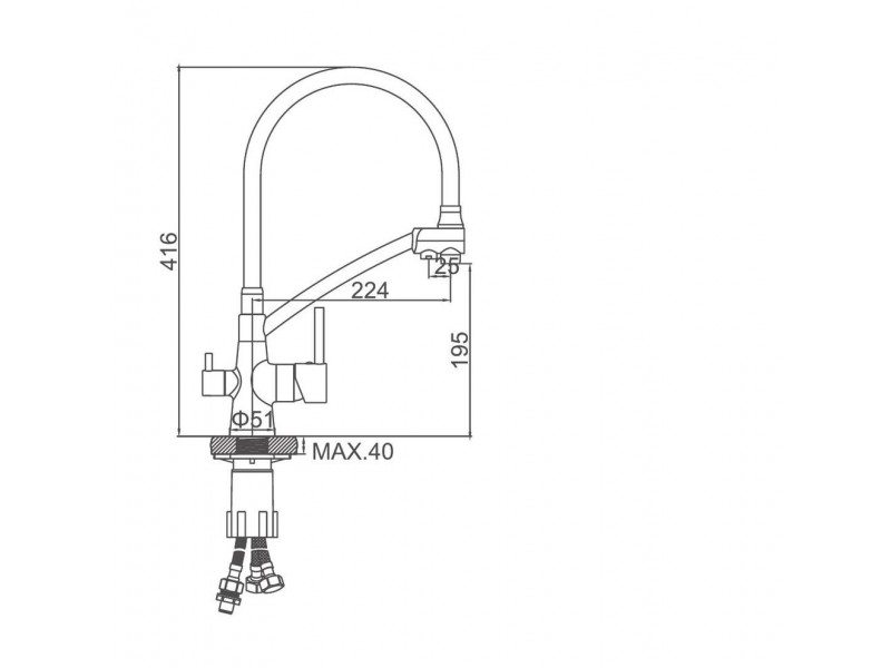 Комплектация: смеситель, гибкая подводка, крепление;