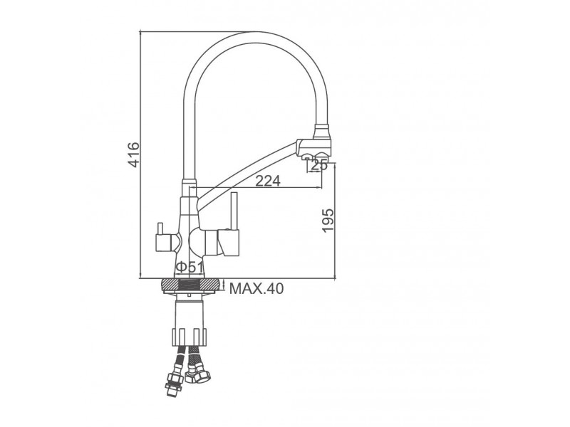 Комплектация: смеситель, гибкая подводка, крепление;