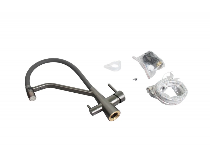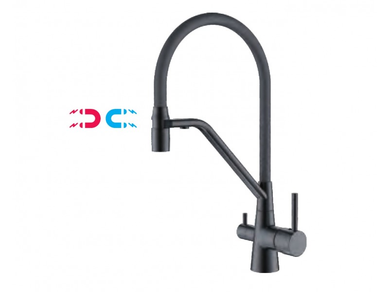 Смеситель для кухни с гибким силиконовым изливом, магнитным держателем, подключением фильтра питьевой воды.