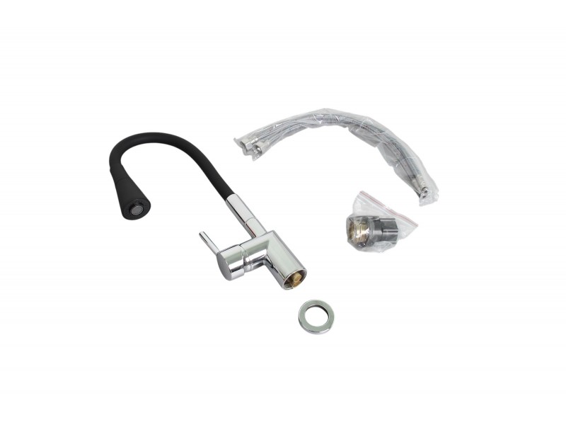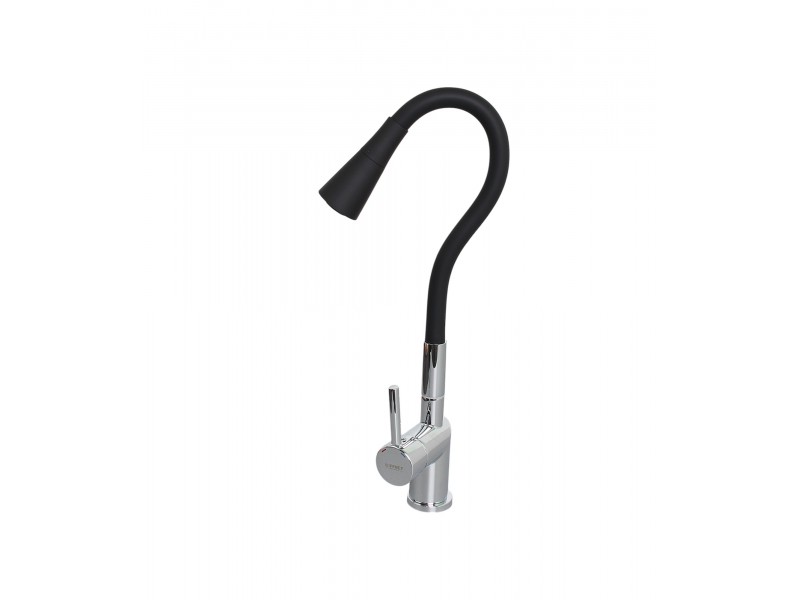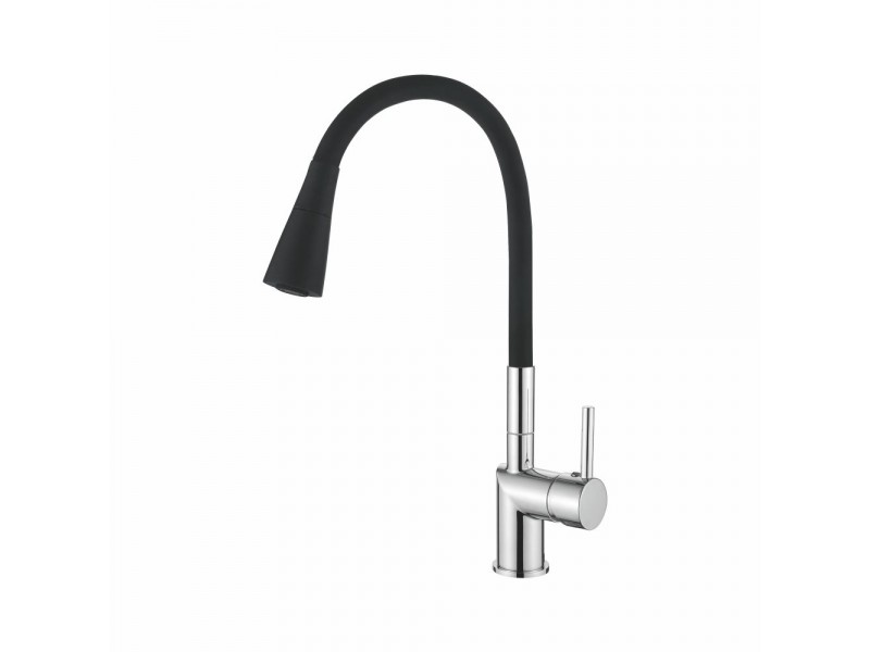Смеситель для кухни с гибким полужестким силиконовым изливом и лейкой с двумя режимами.
