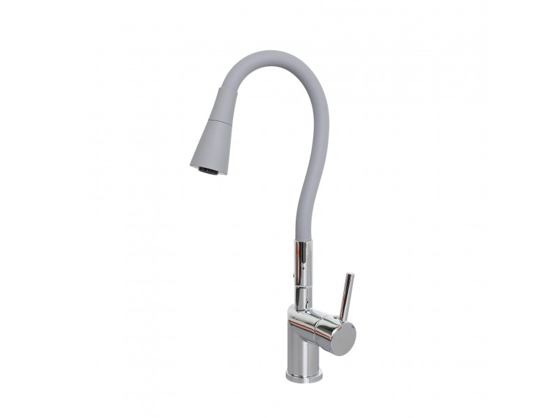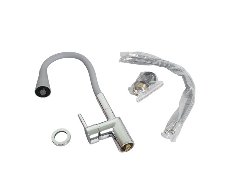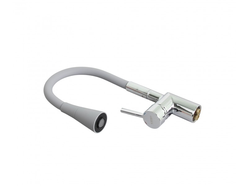 Смеситель для кухни с гибким полужестким силиконовым изливом и лейкой с двумя режимами.