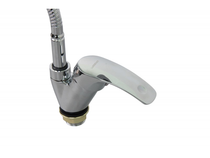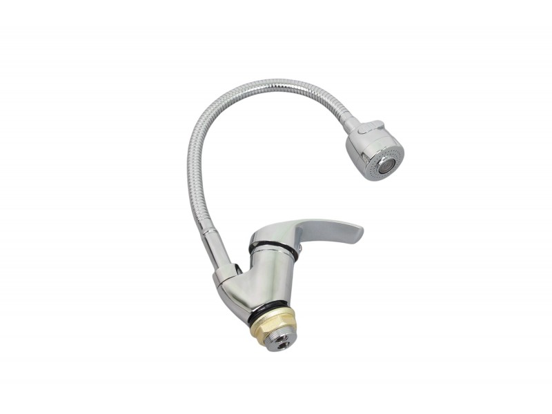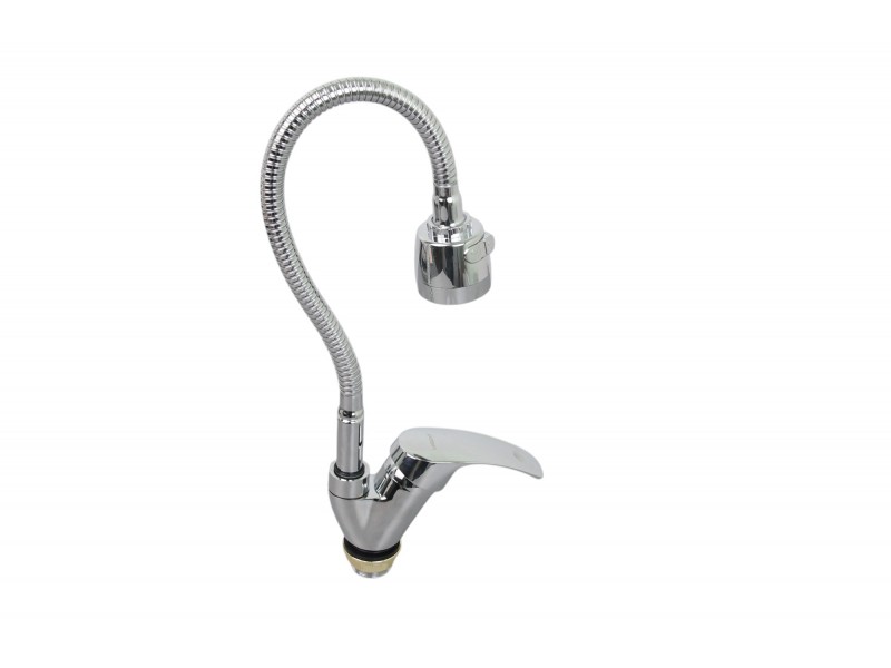 Смеситель для кухонной мойки с гибким полужестким изливом и лейкой с двумя режимами. Крепится на гайке. Легкое управление удобной ручкой. Керамический картридж 35мм в корпусе из цинка. Классический цвет хром, глянцевая поверхность. Гибкий излив позволяет легко менять и фиксировать угол наклона. Простой, удобный, практичный смеситель, позволяющий поэкспериментировать на кухне.